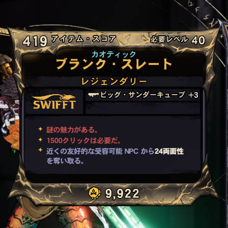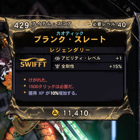 カテゴリ:アイテム 装備 アーマー スウィフト レジェンダリー ワールドドロップ