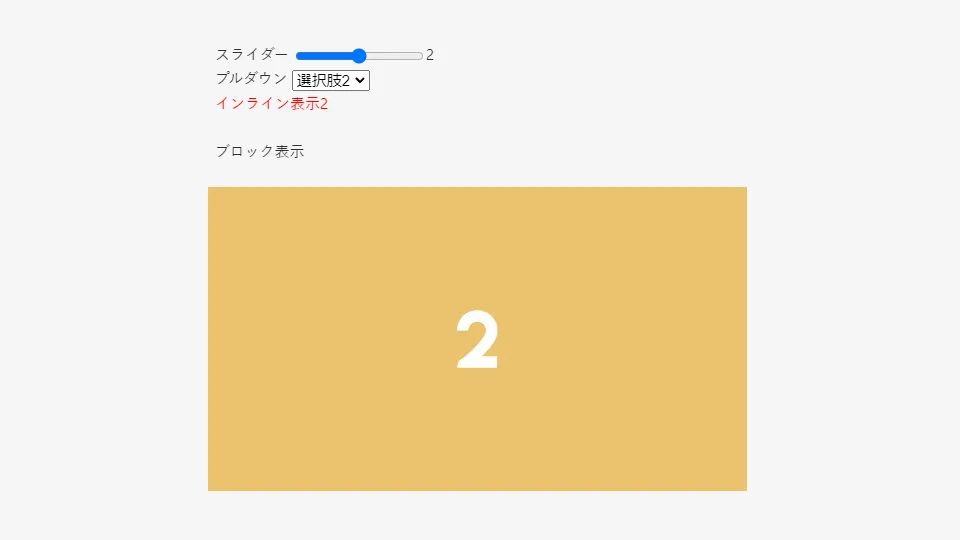 inputのrangeやselectで選択した値に応じ、同じグループに属する他の要素の表示を切り替える。同一ページ内に複数のグループを設置して別々に操作することが可能。