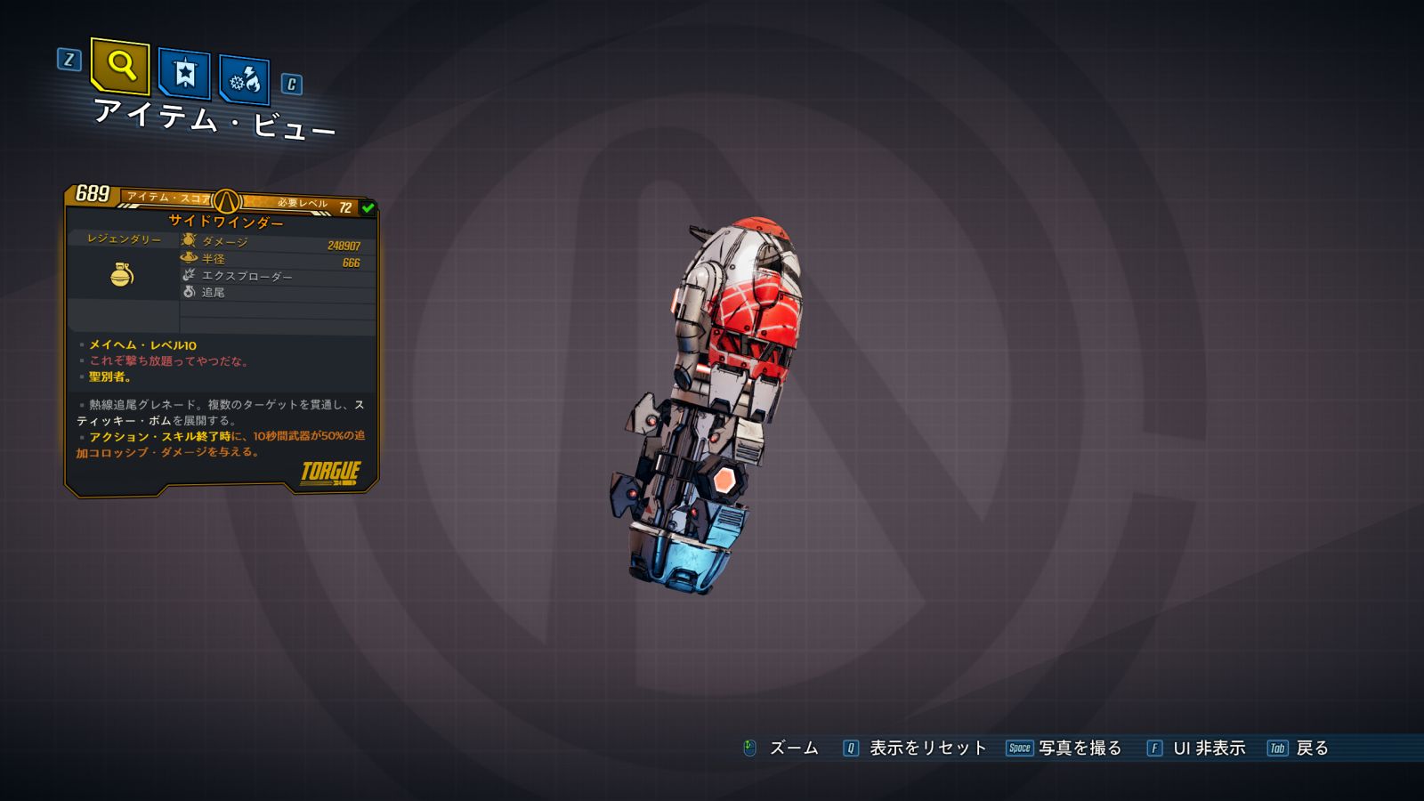 カテゴリ:アイテム グレネードMOD レジェンダリー トーグ ディレクターズ・カット バンカー・マスター