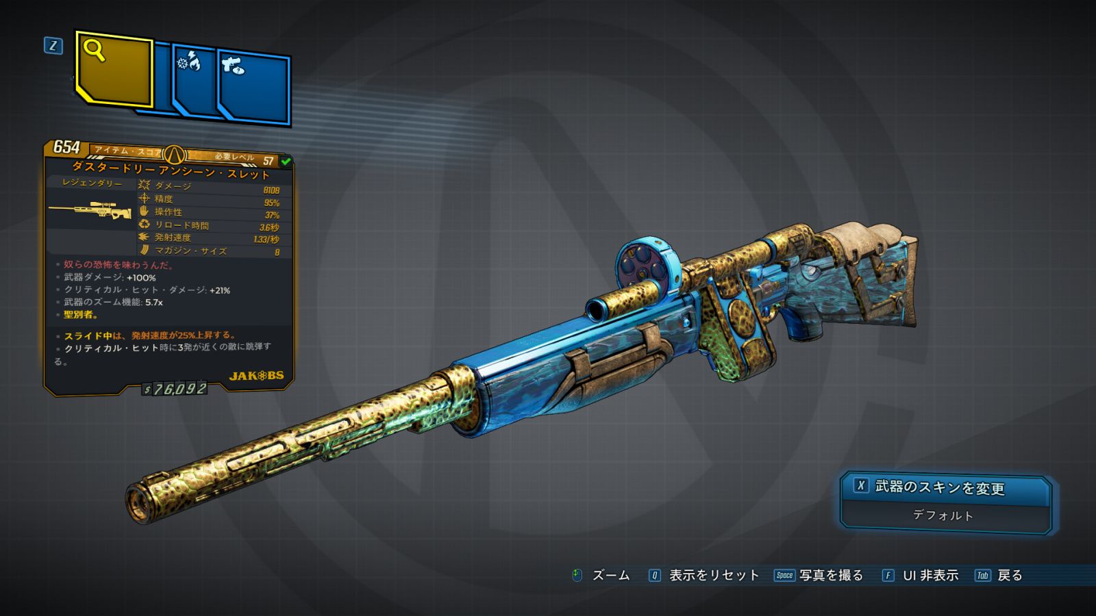 カテゴリ:アイテム 武器 スナイパー・ライフル レジェンダリー ジェイコブス 愛と銃と触手