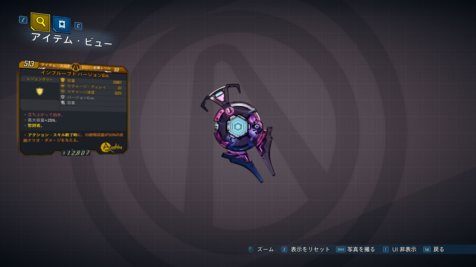 シールドが満タンの時、次の射撃時に25%のシールドを消費してダメージが125%増加する。
