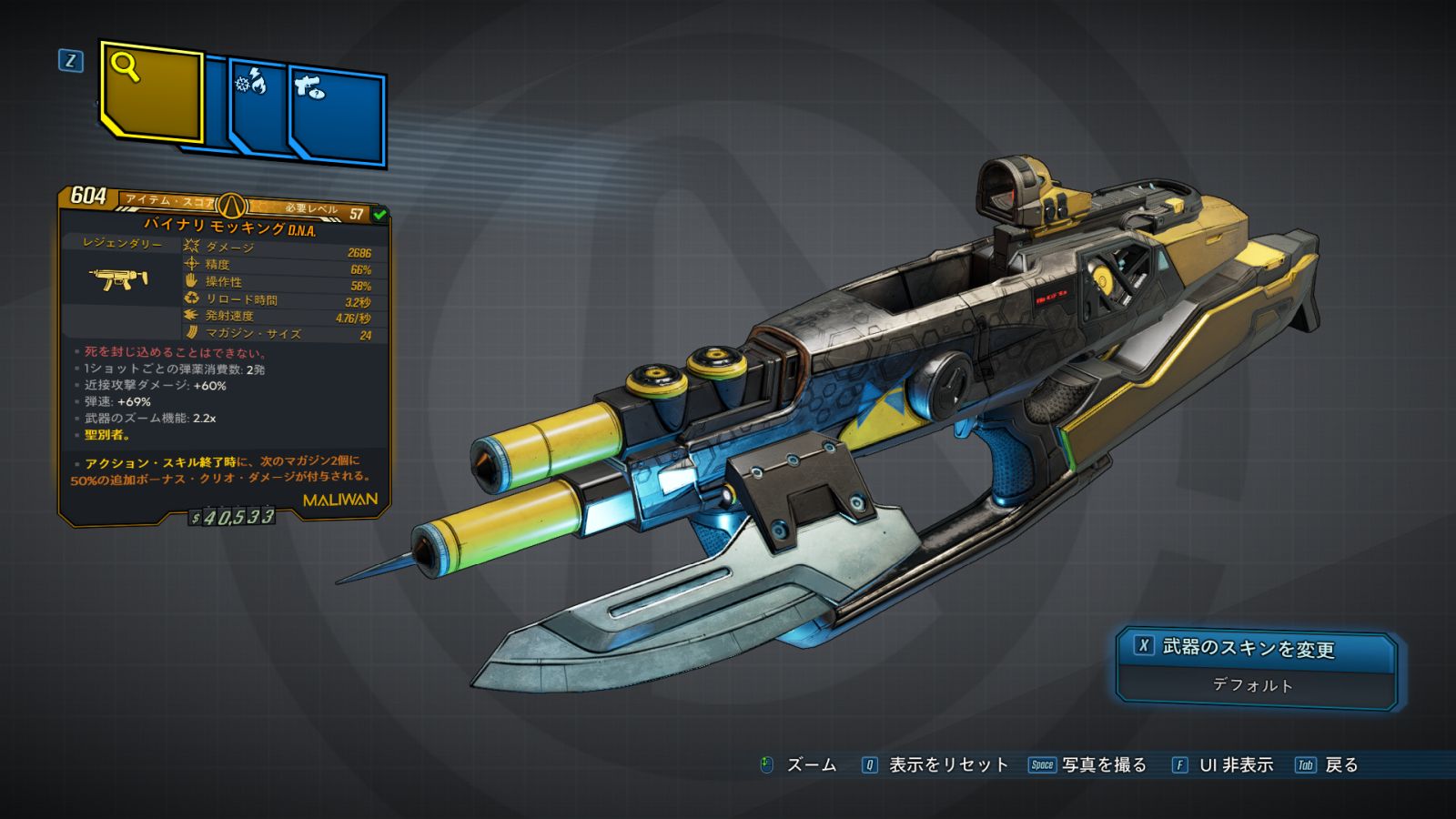 カテゴリ:アイテム 武器 サブマシンガン レジェンダリー マリワン メイヘム6以上限定