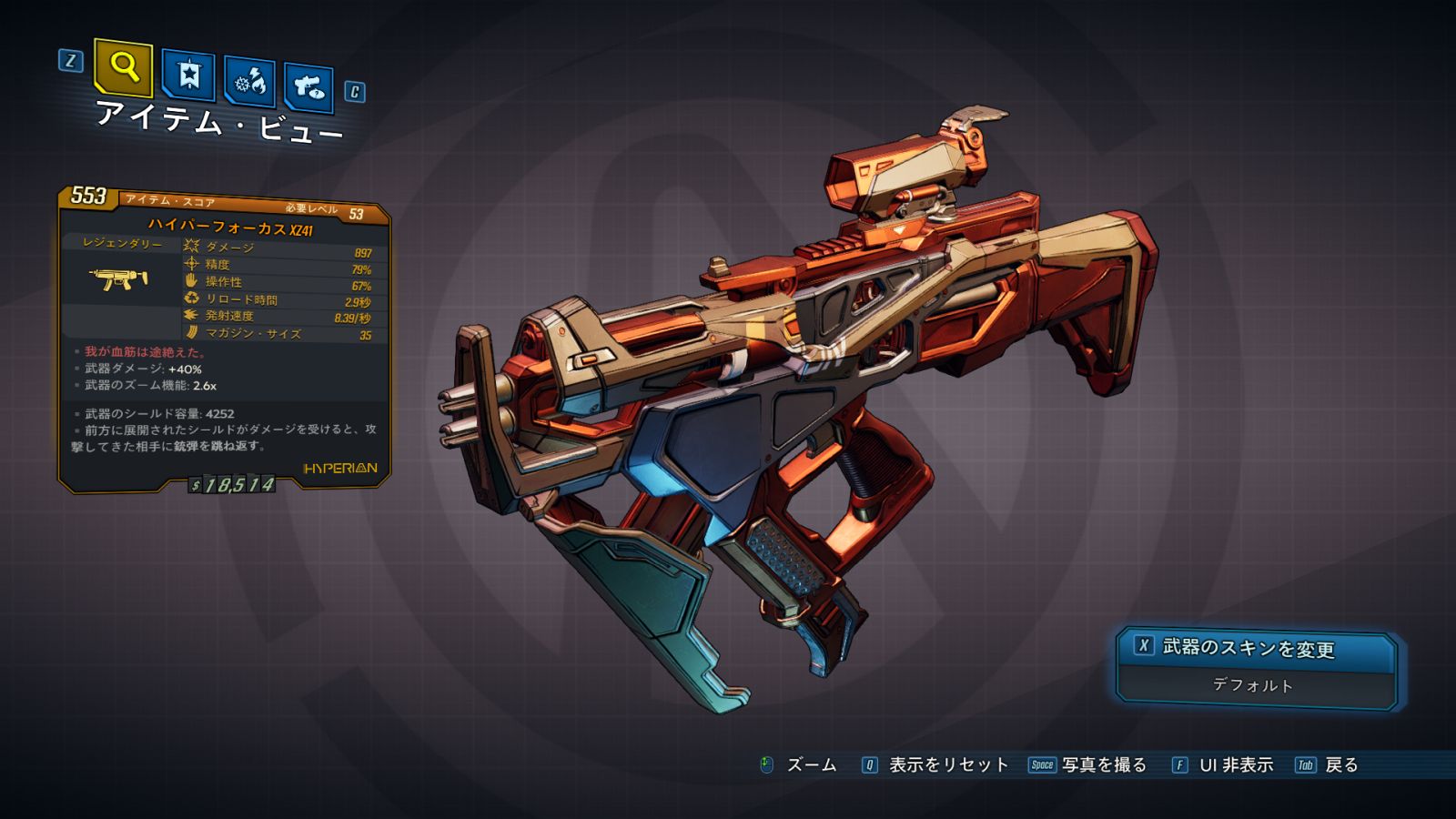| ・武器ダメージ: -% ・武器のズーム機能: x |