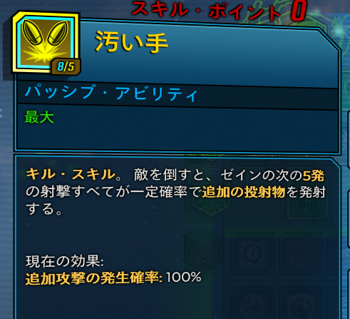 汚い手の発生確率を上げ、自分で撃つビルドとしています。