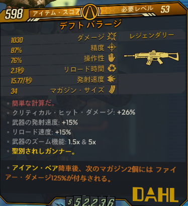 そもそも射撃ビルド向きではないですね。青赤で試したのですがマガジンも小さいのできっちり敵に当てないとあっという間にリロードすることになります。これなら破壊の手段のシナジーを捨ててサム・フォー・ザ・ロードで短時間にぶち込む運用をした方が幾分かマシまであると思います。