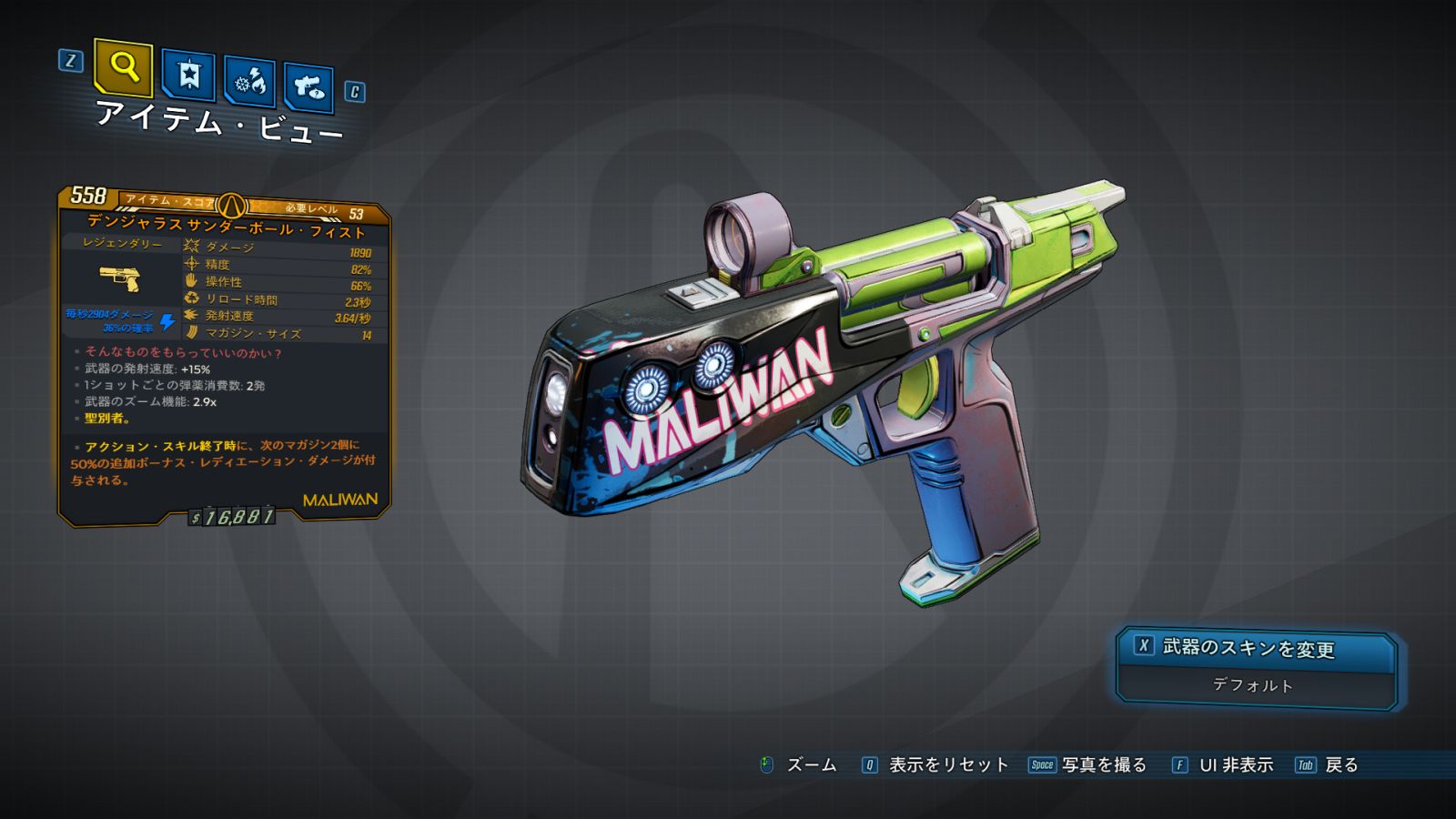 カテゴリ:アイテム 武器 ピストル レジェンダリー マリワン ワールドドロップ