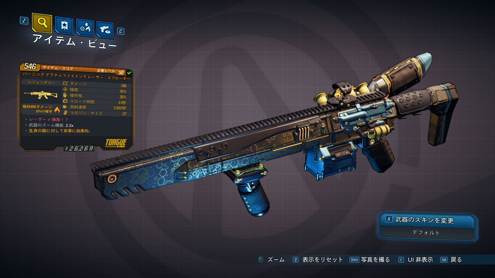 フルオートのレーザー・ライフルで、レーザーを照射している間は対象に継続的なダメージを与える。