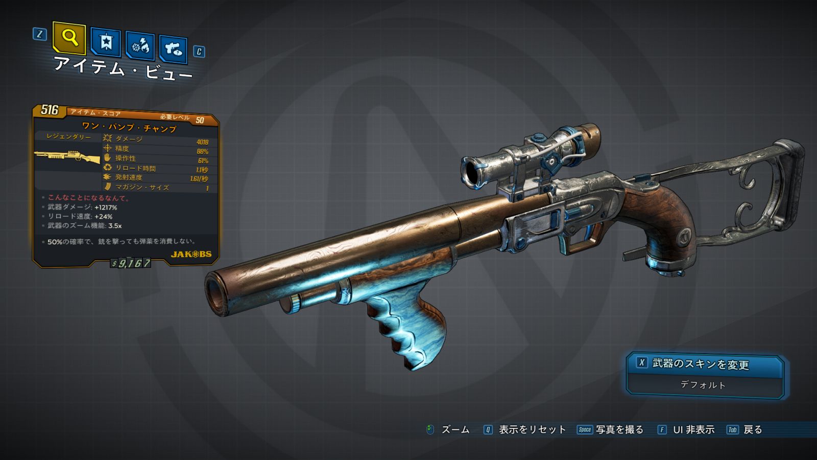 - 説明にはないが、ジェイコブス製なのでクリティカル・ヒット時に近くの敵に向かって跳弾する。