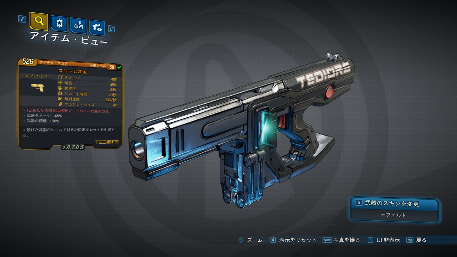 | ・武器ダメージ: -% ・武器の精度: +% ・武器のズーム機能: x |