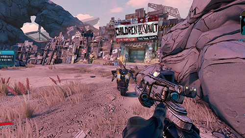 | 「チルドレン・オブ・ヴォルト/C.O.V」と呼ばれるバンディットのカルト教団に奇襲されたものの、クリムゾン・レイダースは新たなヴォルト・ハンター、すなわち君の勧誘に成功した。セイレーンのリーダーとなったリリスは、不安症の黄色いトースターらしき物体と共に、C.O.Vのプロパガンダセンターへ侵入するよう、君に依頼してきた。 |