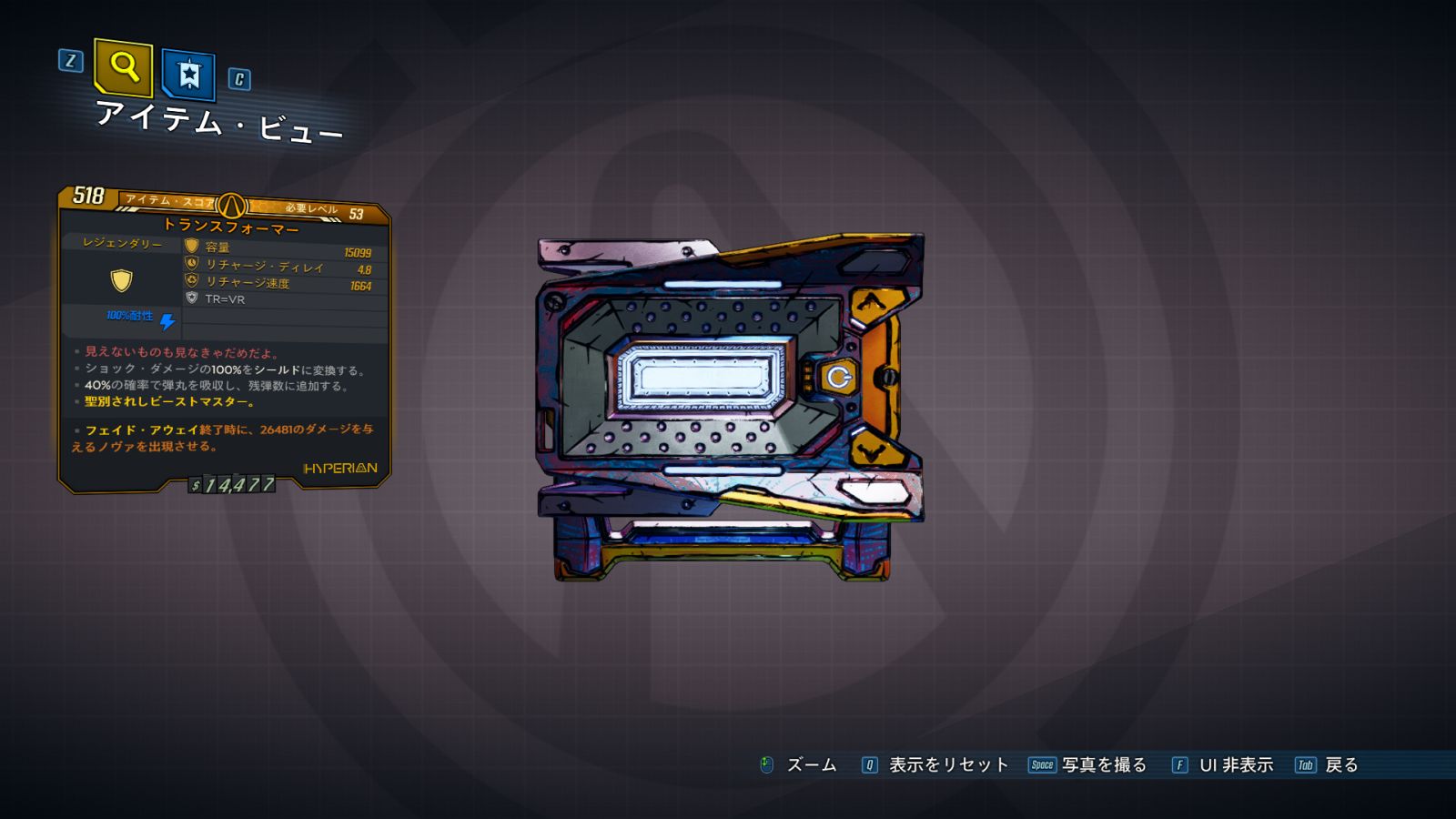 カテゴリ:アイテム シールド レジェンダリー ハイペリオン ワールドドロップ