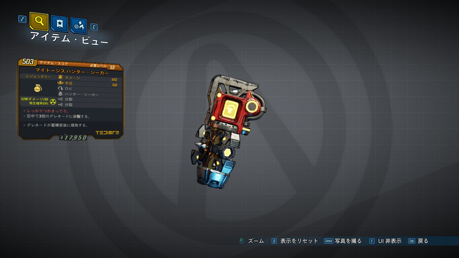 カテゴリ:アイテム グレネードMOD レジェンダリー ティーディオール ワールドドロップ
