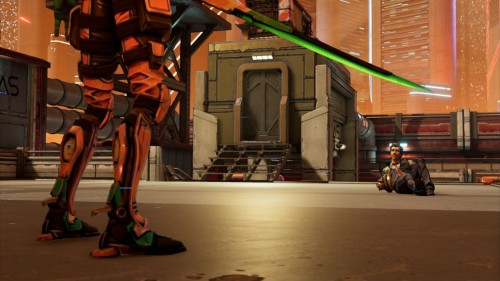 - 防衛キャノンの再起動を試みた後、中庭に設置されているタレットを使って敵を撃退する。