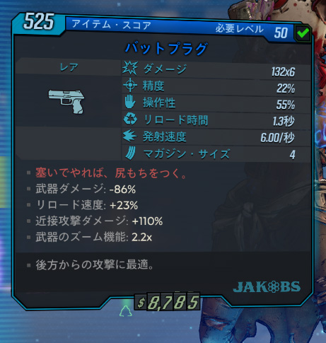 メイン武器は高い近接攻撃ダメージ・ボーナスを持つバットプラグを使用する。