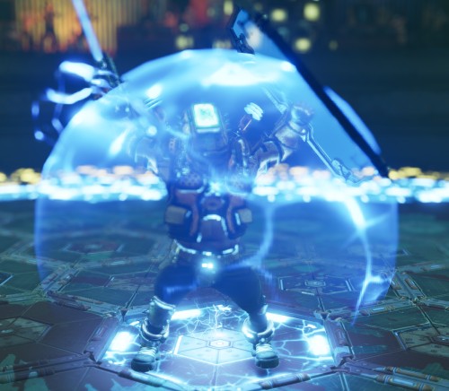 普段は強力なシールドで全身を覆っており攻撃が通らないが、モクシィの協力によってシールドをダウンさせ、戦えるようになる。