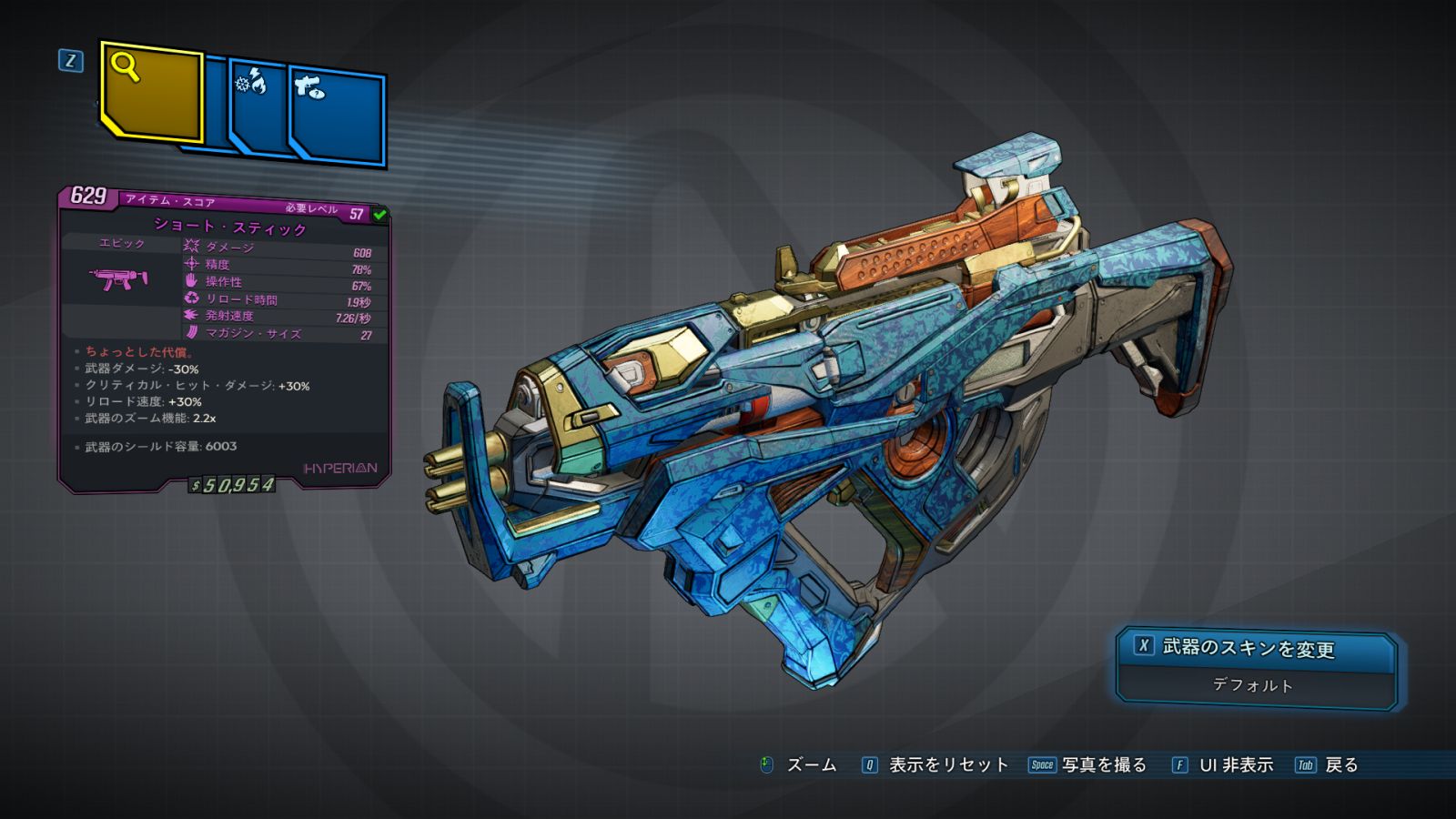 | Part_SM_HYP_Barrel_ShortStick | クリティカル・ダメージ: +7.5% リロード時間: -26% | 武器のシールド容量: -20% ダメージ: -39% | ショート・スティック |