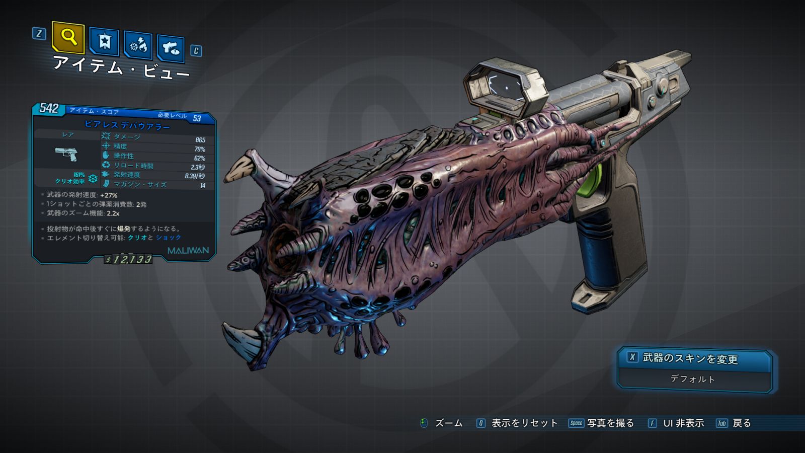 | Part_PS_MAL_Barrel_ETech_A | エレメンタル発生確率: +15% マガジン・サイズ: +10% 近接攻撃ダメージ: +60% | | |