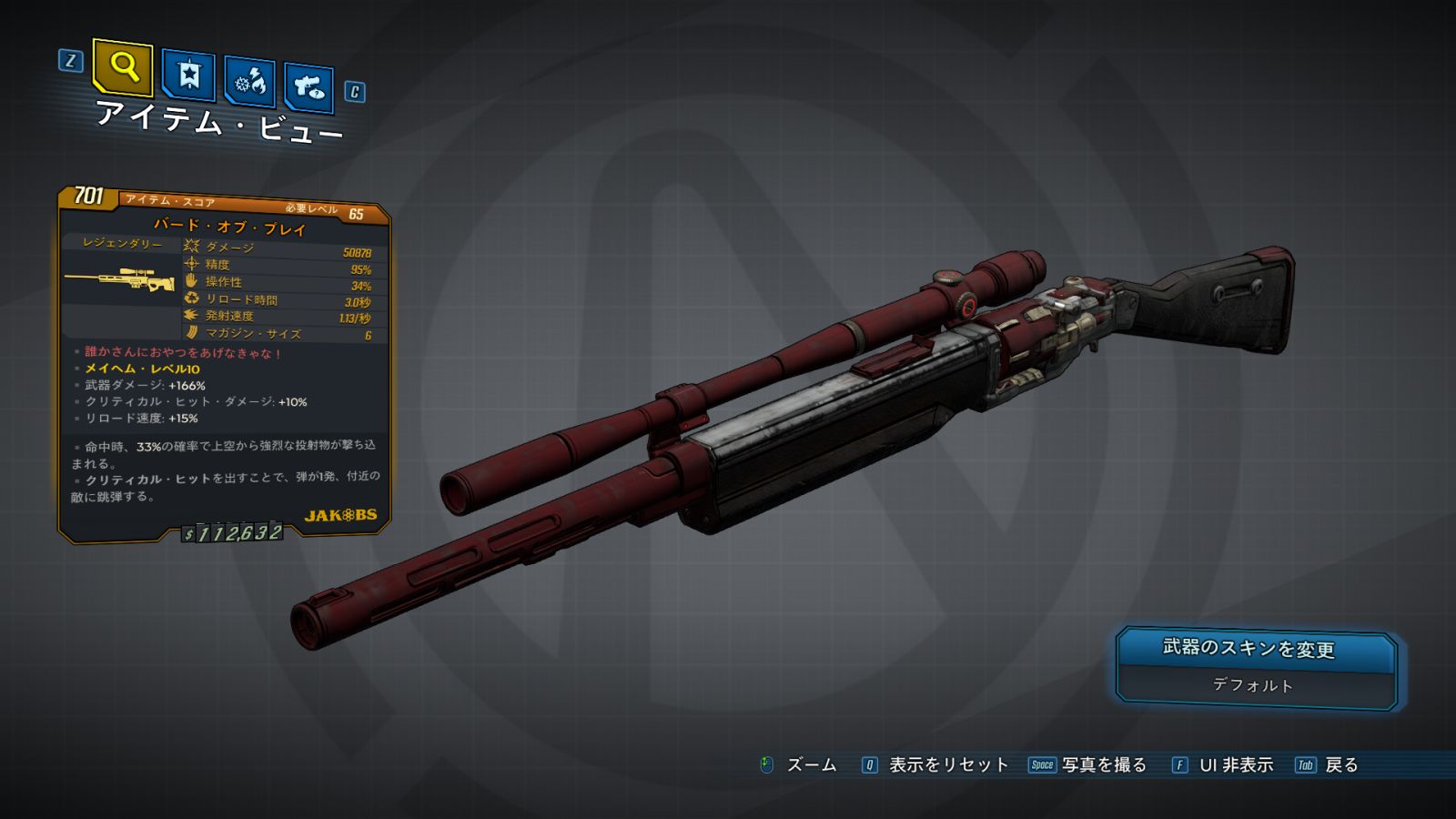 | Part_SR_JAK_Barrel_03_C | クリティカル・ダメージ: +10% | | |