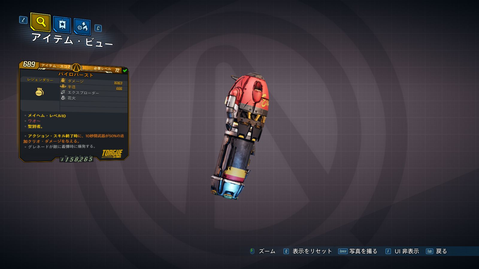 カテゴリ:アイテム グレネードMOD レジェンダリー トーグ ディレクターズ・カット パンドラへようこそ