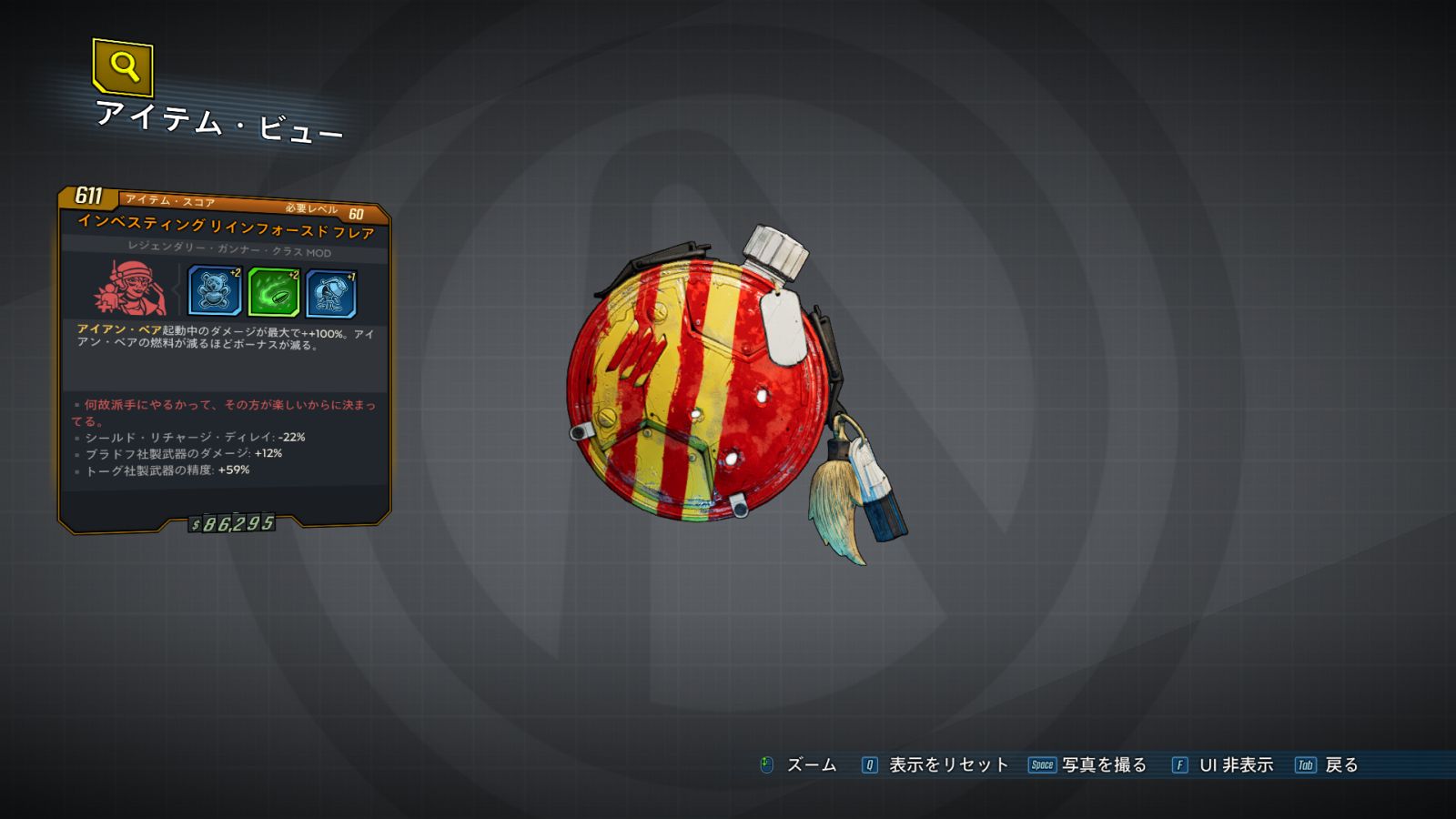 アイアン・ベアの燃料が減るほどダメージが上昇し、最大で+100%になる。