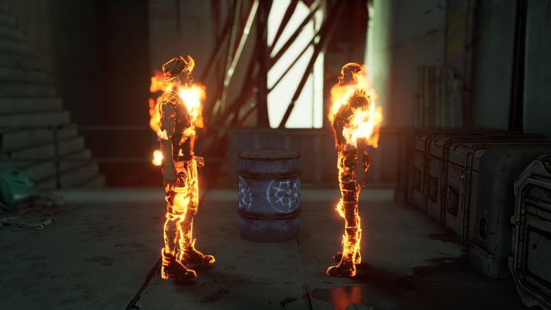 - 燃えてる二人組の横に置いてあるクリオバレルを爆発させるとミッションスタート。