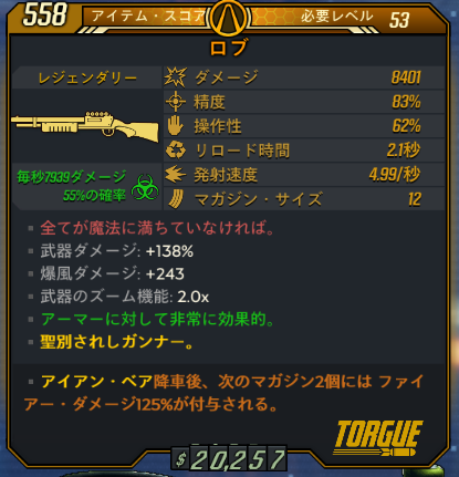 単純な火力は最も出せる聖別とクラスMODの組み合わせです。
