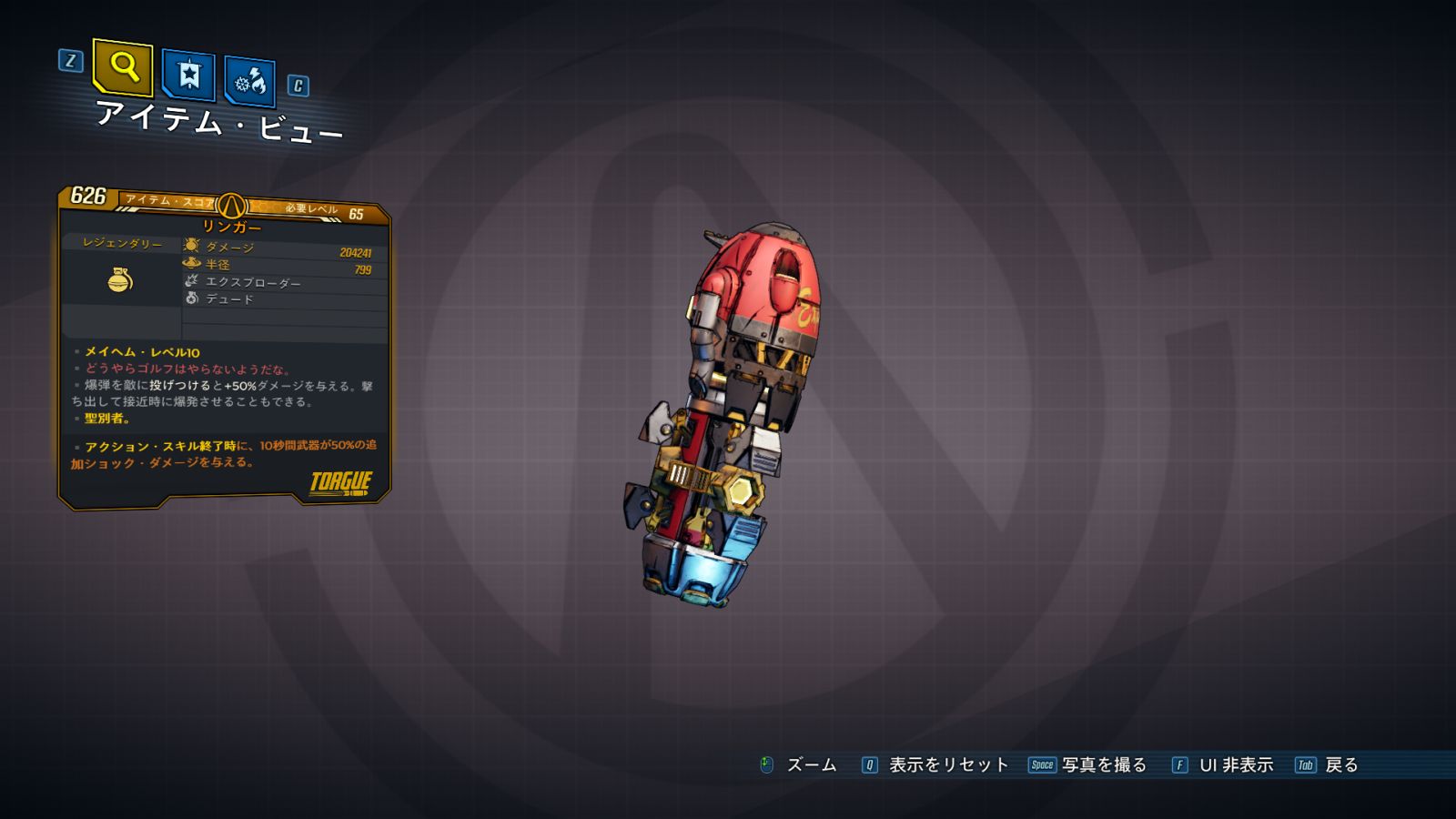 カテゴリ:アイテム グレネードMOD レジェンダリー トーグ ディレクターズ・カット