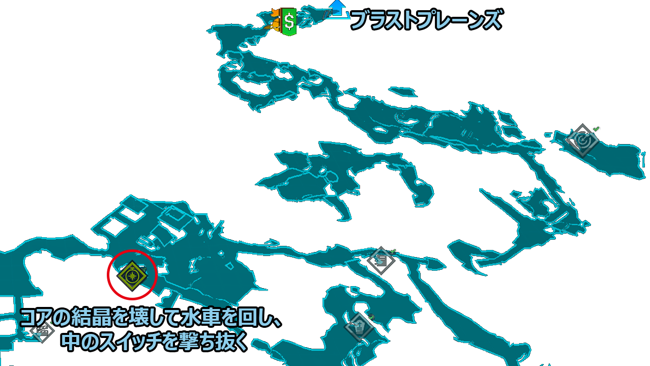 水車を固定しているコアの結晶を破壊すると水車が動き出す。