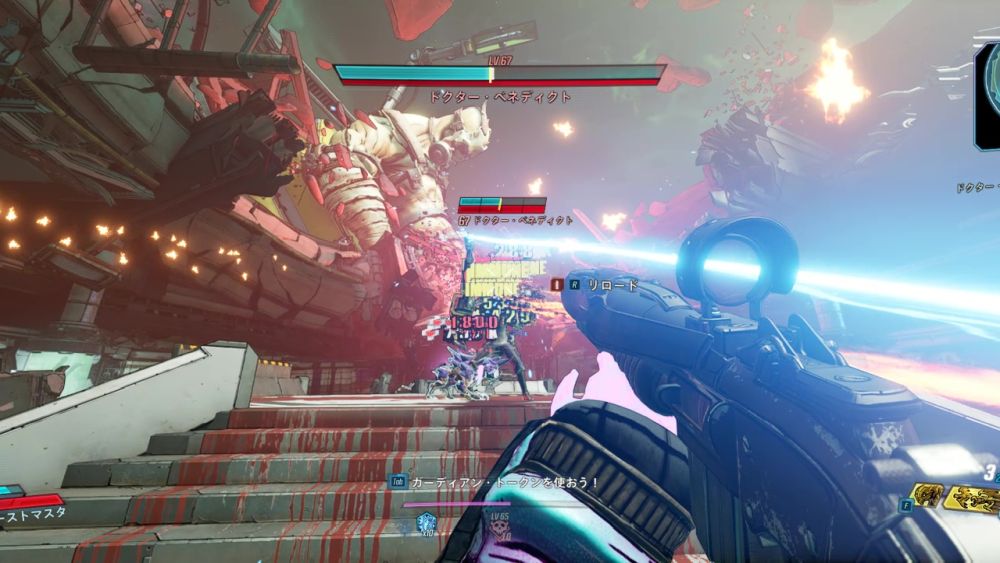 ショックレーザーにはシールドを吸収する能力があり、プレイヤーが受けたダメージの分だけドクター・ベネディクトのシールドが回復してしまう。