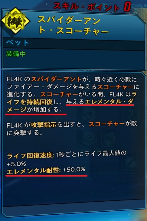 - アクション・スキル終了時に、次のマガジン2個に50%の追加ボーナス・エレメンタル・ダメージが付与される。