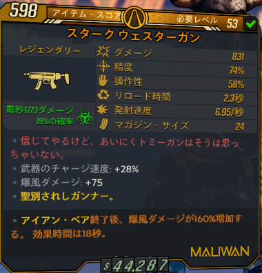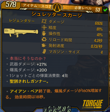 ミニガン(エクスプローシブ)は敵に当たる度にベアがもりもり回復します。モズのグレネードも供給してくれます。火力も聖別効果を受けてそれなり以上にあります。
