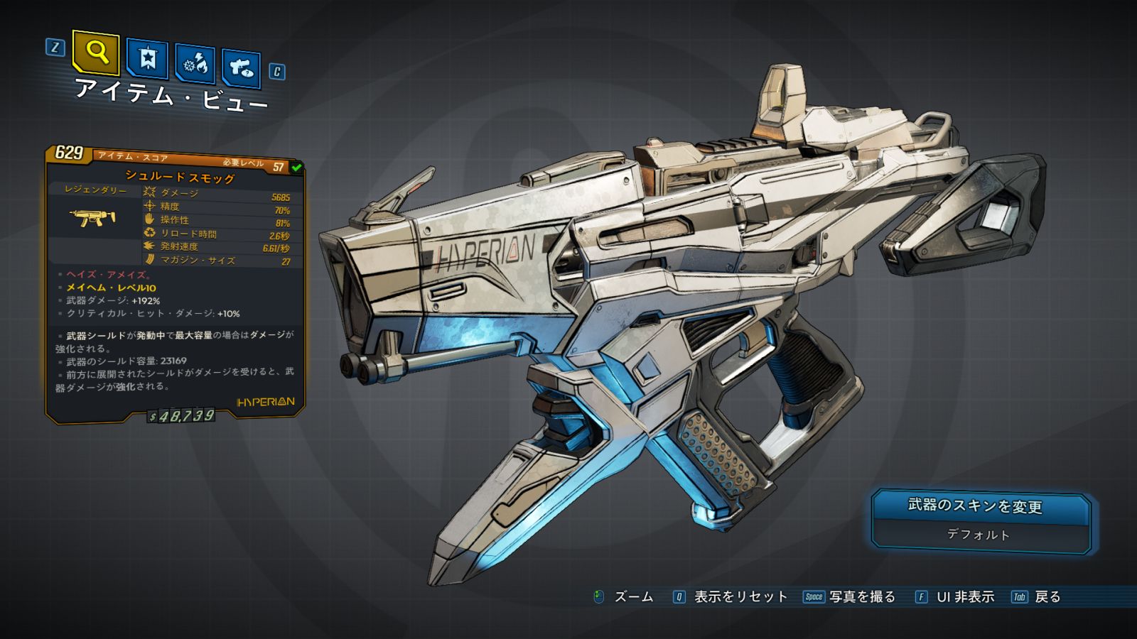 | Part_SM_HYP_Shield_01 | 武器シールド容量: +15% リロード時間: -5% | | ハイペリオン・シールド 効果なし |