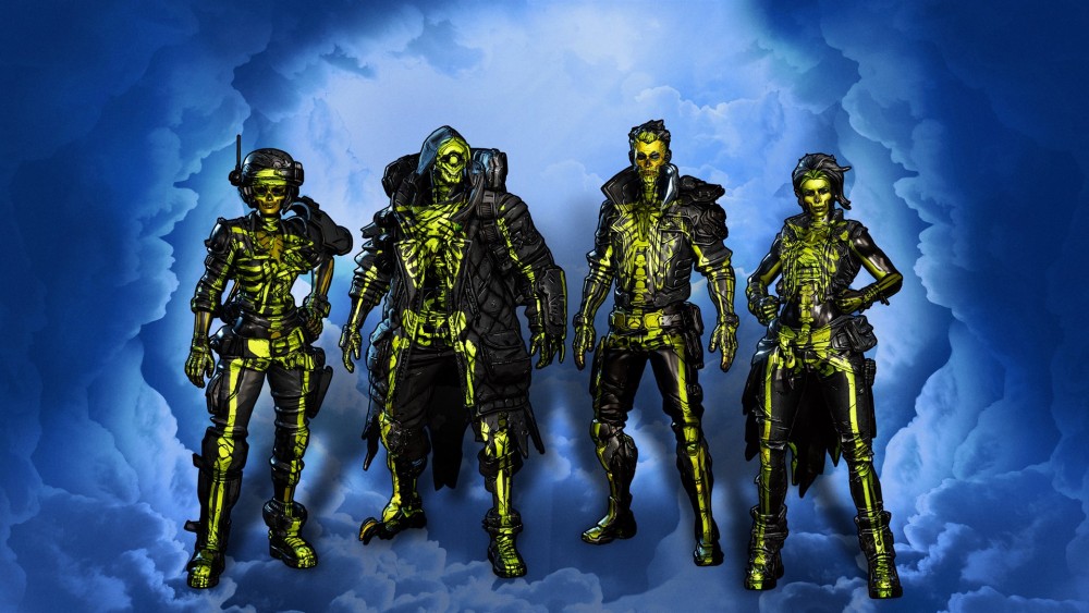 光沢のある黒ずくめの全身にネオン色のスカルをあしらったデザインのコスメティックパック。ネオン・スカルをテーマにしたスキン及び頭部、武器アクセサリとエコー・テーマが含まれている。