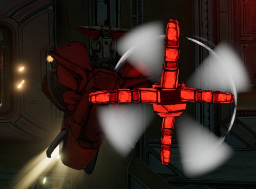赤い機体のマリワン・ロボットで、両手をプロペラのように回転させてこちらの攻撃を弾いてくる。