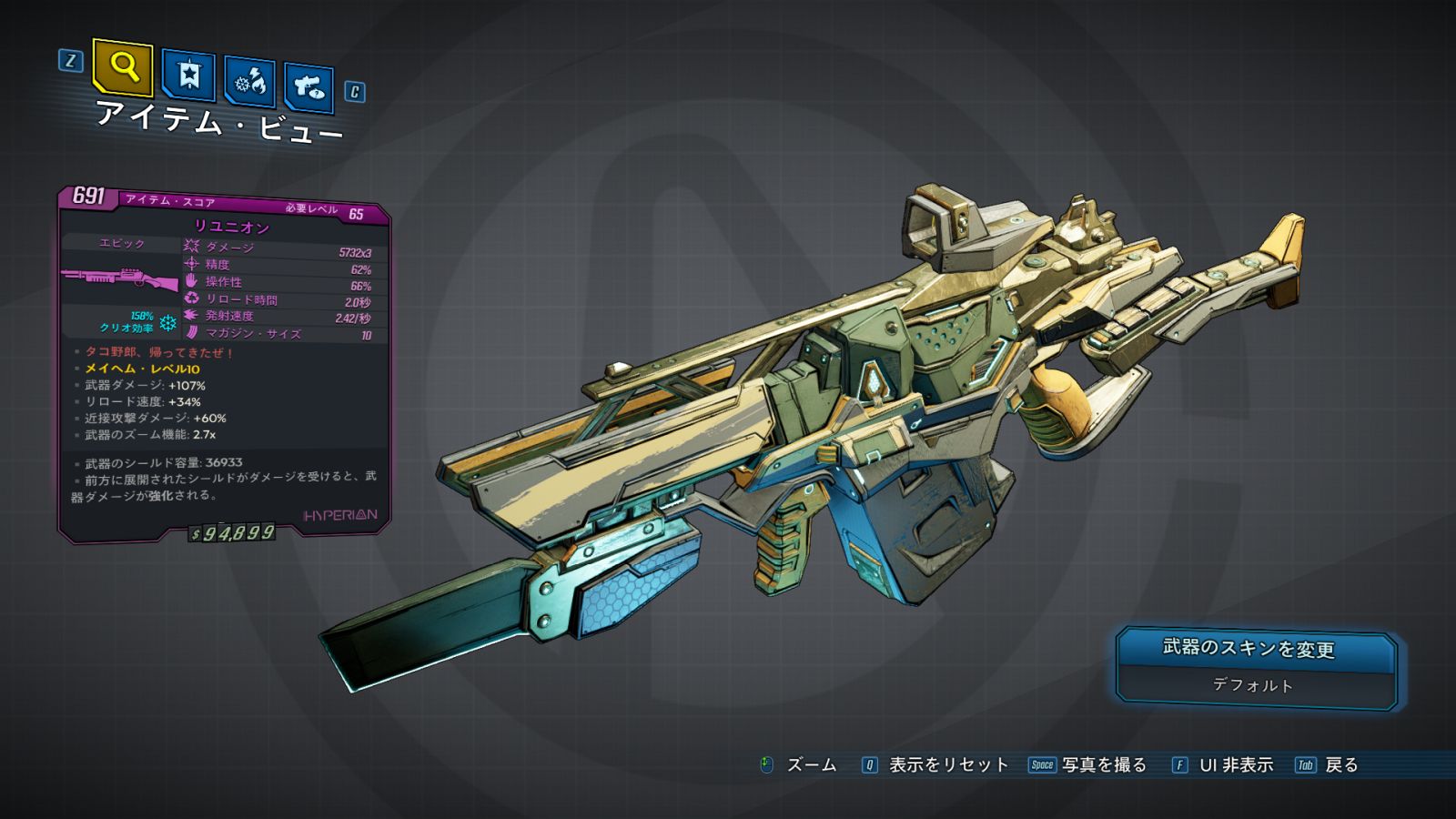 カテゴリ:アイテム 武器 ショットガン ユニーク ハイペリオン ワールドドロップ 聖別なし サイコ・クリーグ