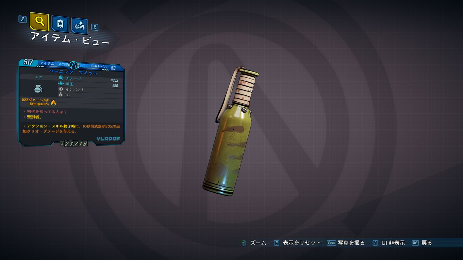 カテゴリ:アイテム グレネードMOD ユニーク ブラドフ