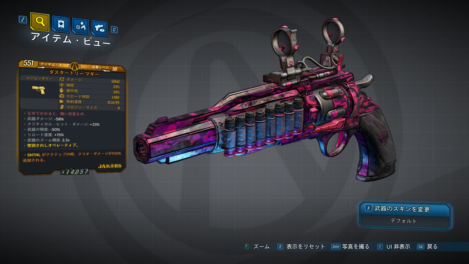 6発の散弾を放つジェイコブス製レジェンダリー・ピストル。