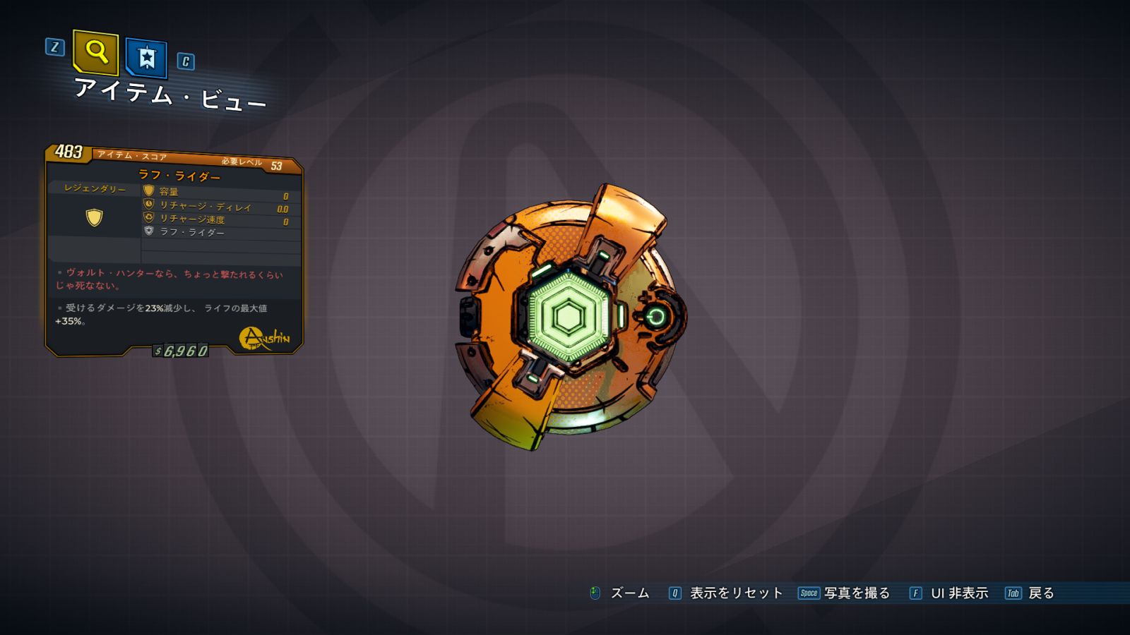 このシールドを装備してシールドがない状態は、「シールド・ダウン中」とも「シールドが最大」とも判定されない。