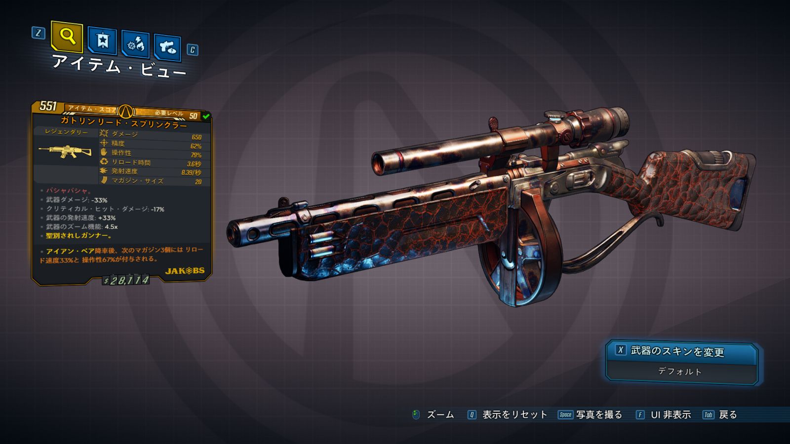 | ・武器ダメージ: -% ・クリティカル・ヒット・ダメージ: -% ・武器のズーム機能: x |