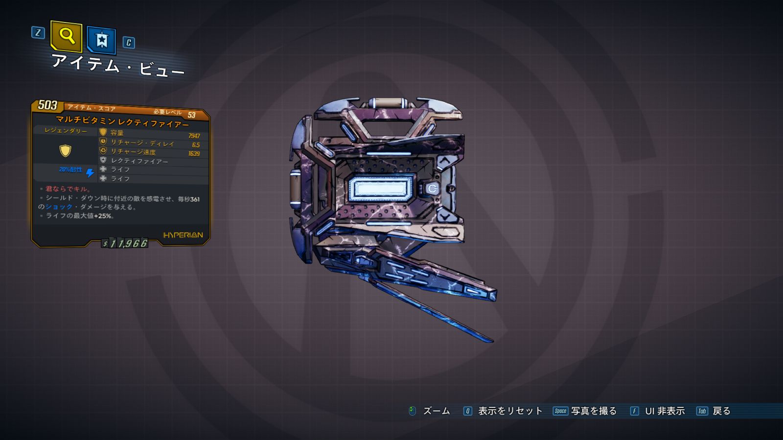 カテゴリ:アイテム シールド レジェンダリー ハイペリオン ワールドドロップ