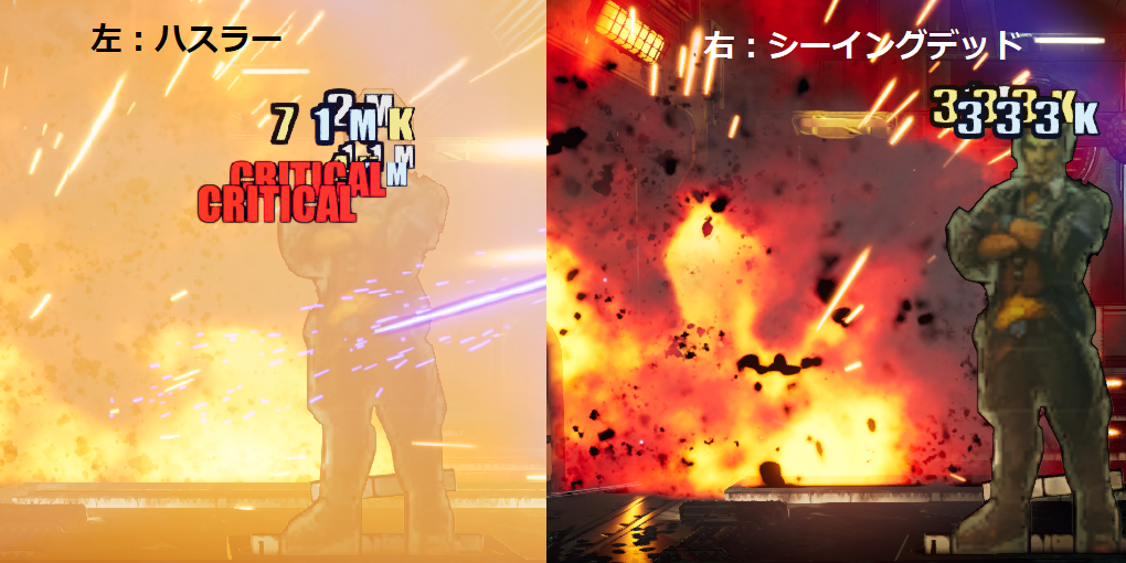 ハスラーの「攻撃時に5%の確率で非クリティカル・ヒットがクリティカル・ヒットになり、スタックを全て消費する。」効果が爆風ダメージを桁違いに上昇させている原因の正体であると思われます。