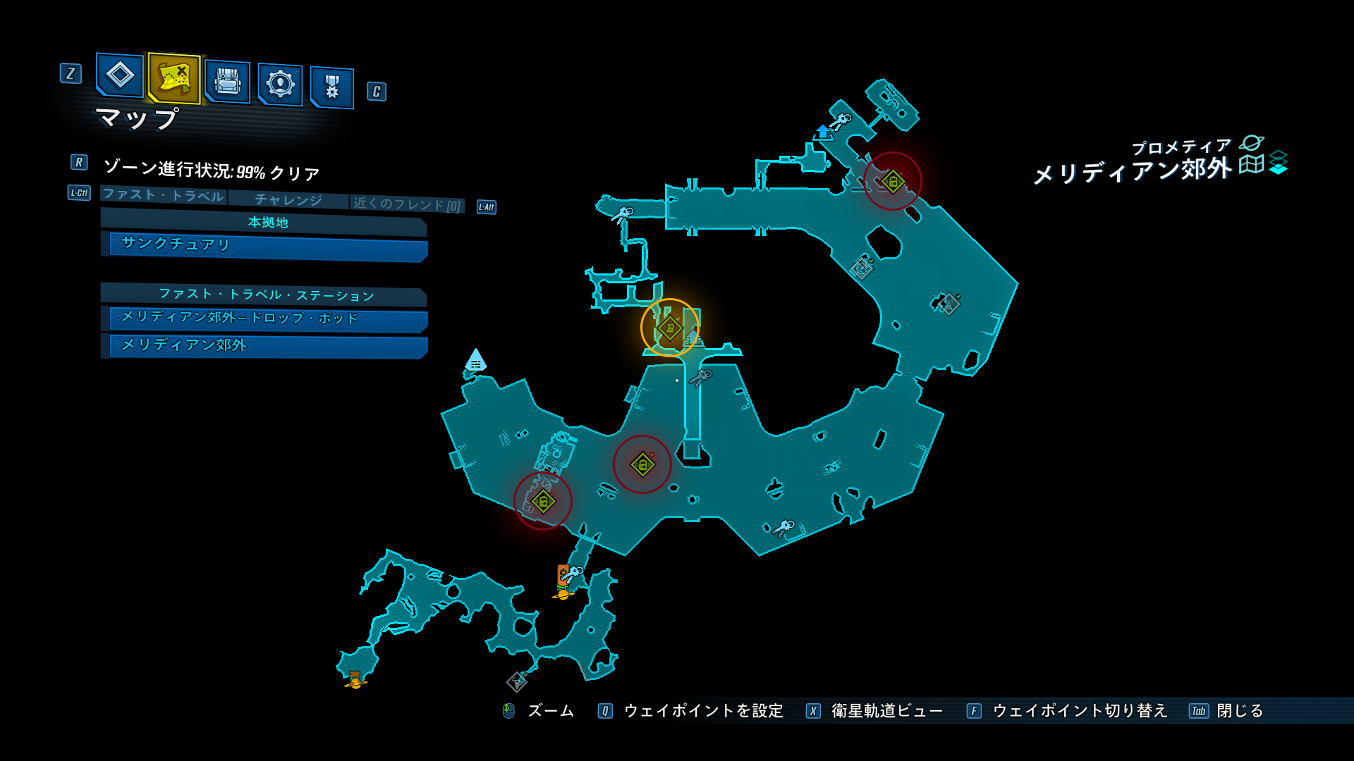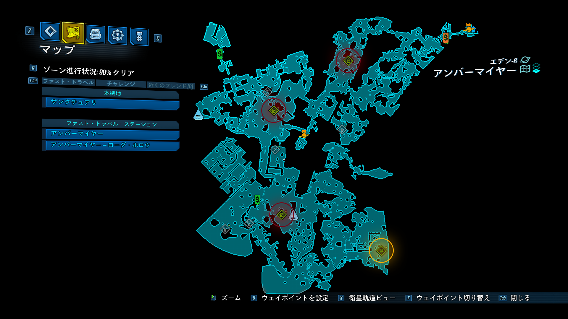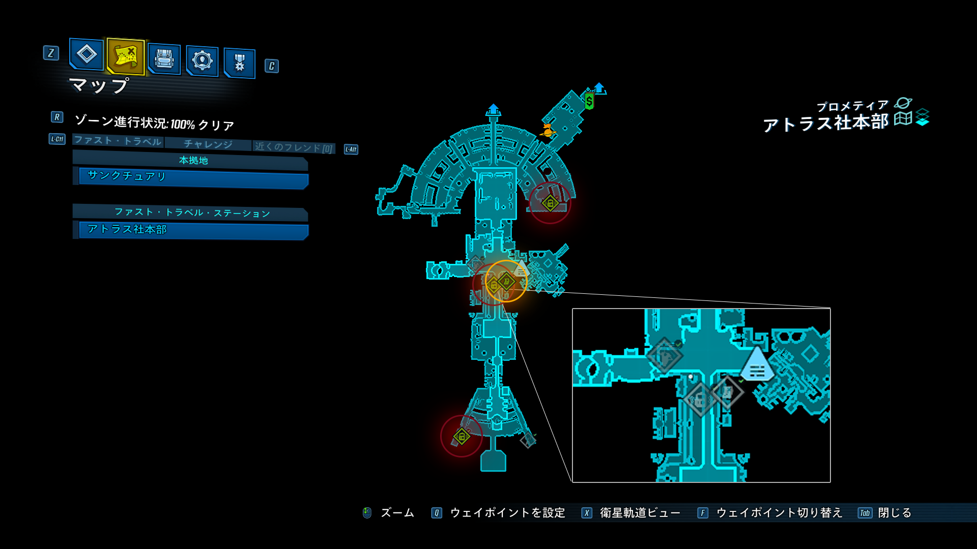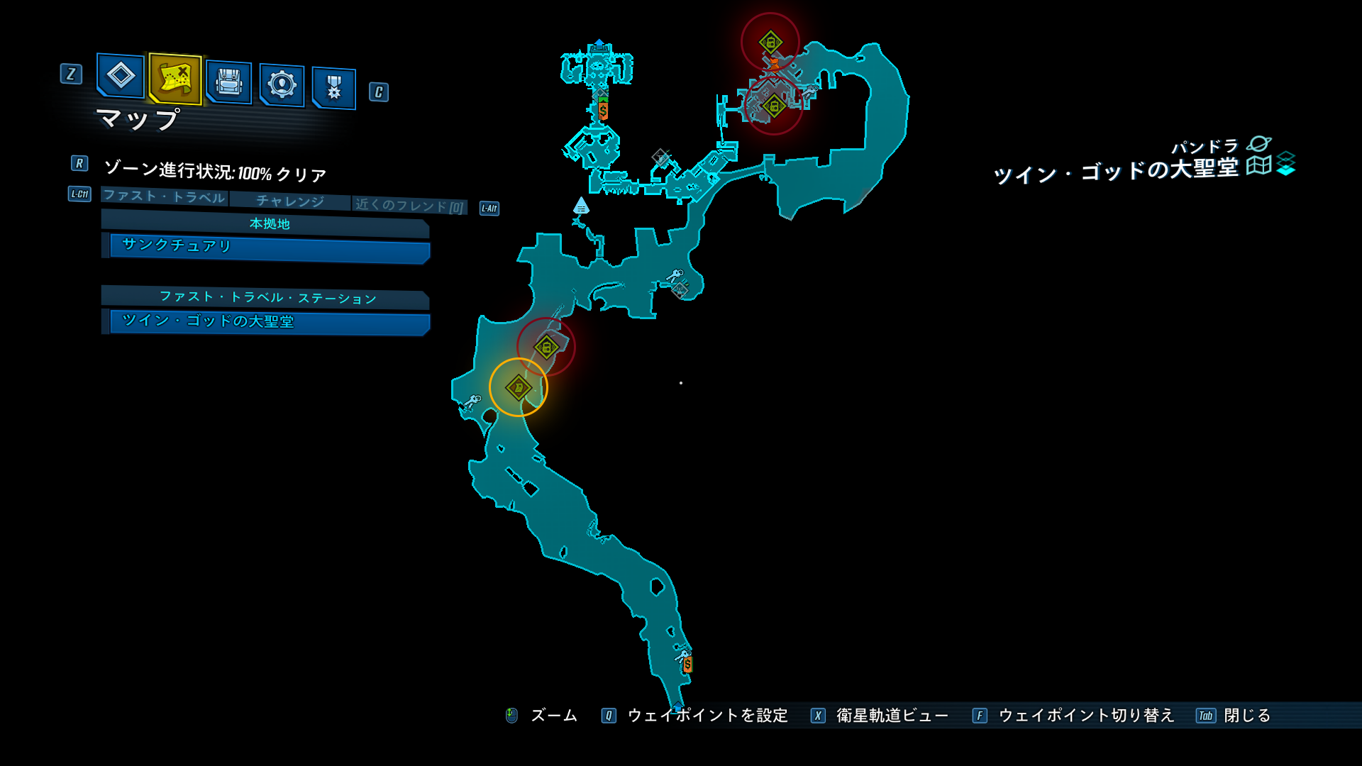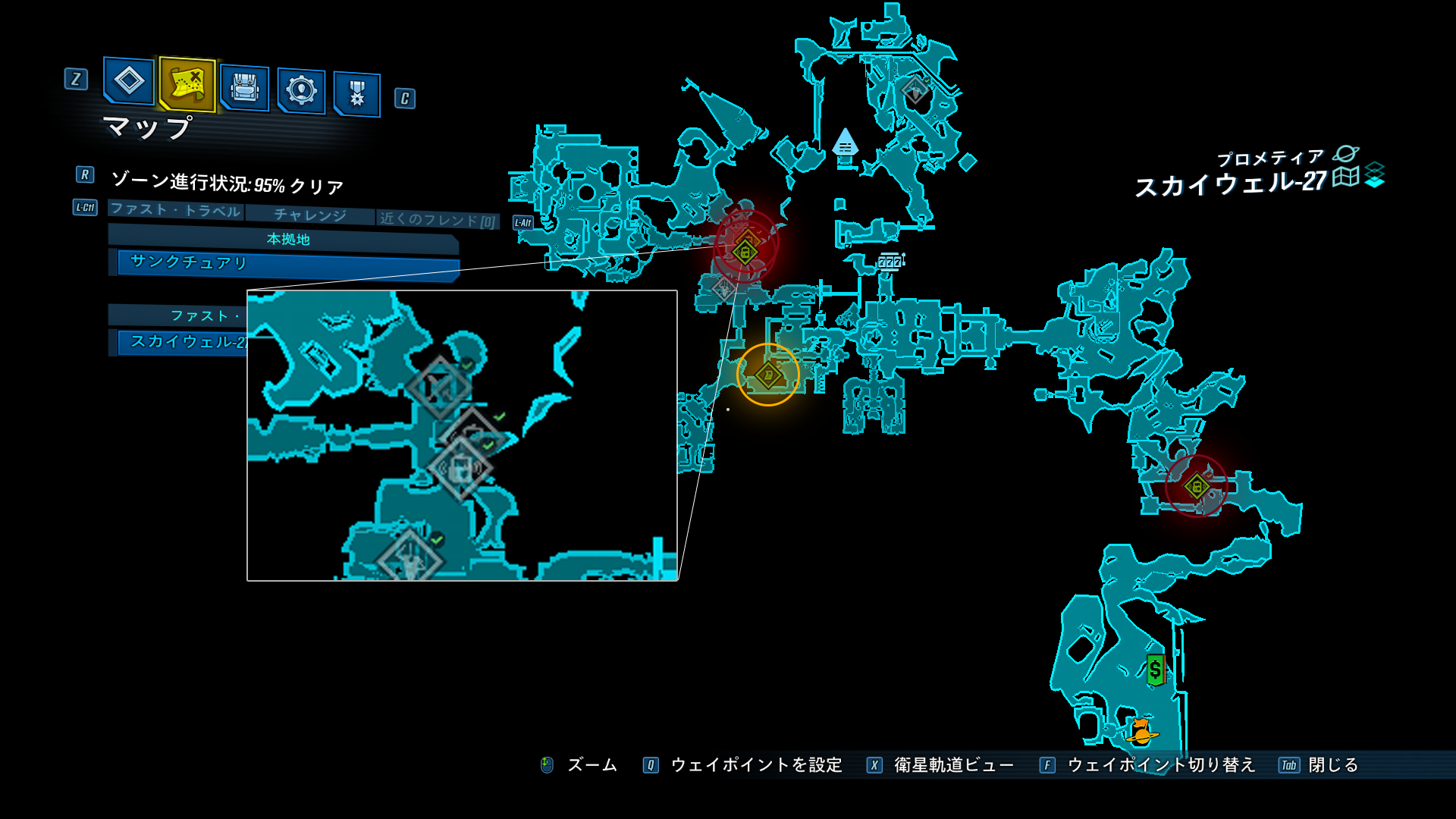 - 各ゾーンに伝説のヴォルト・ハンター「タイフォン」が残した日誌が3つあり、全て回収するとタニスがお宝の場所を割り出してロックを解除してくれる。