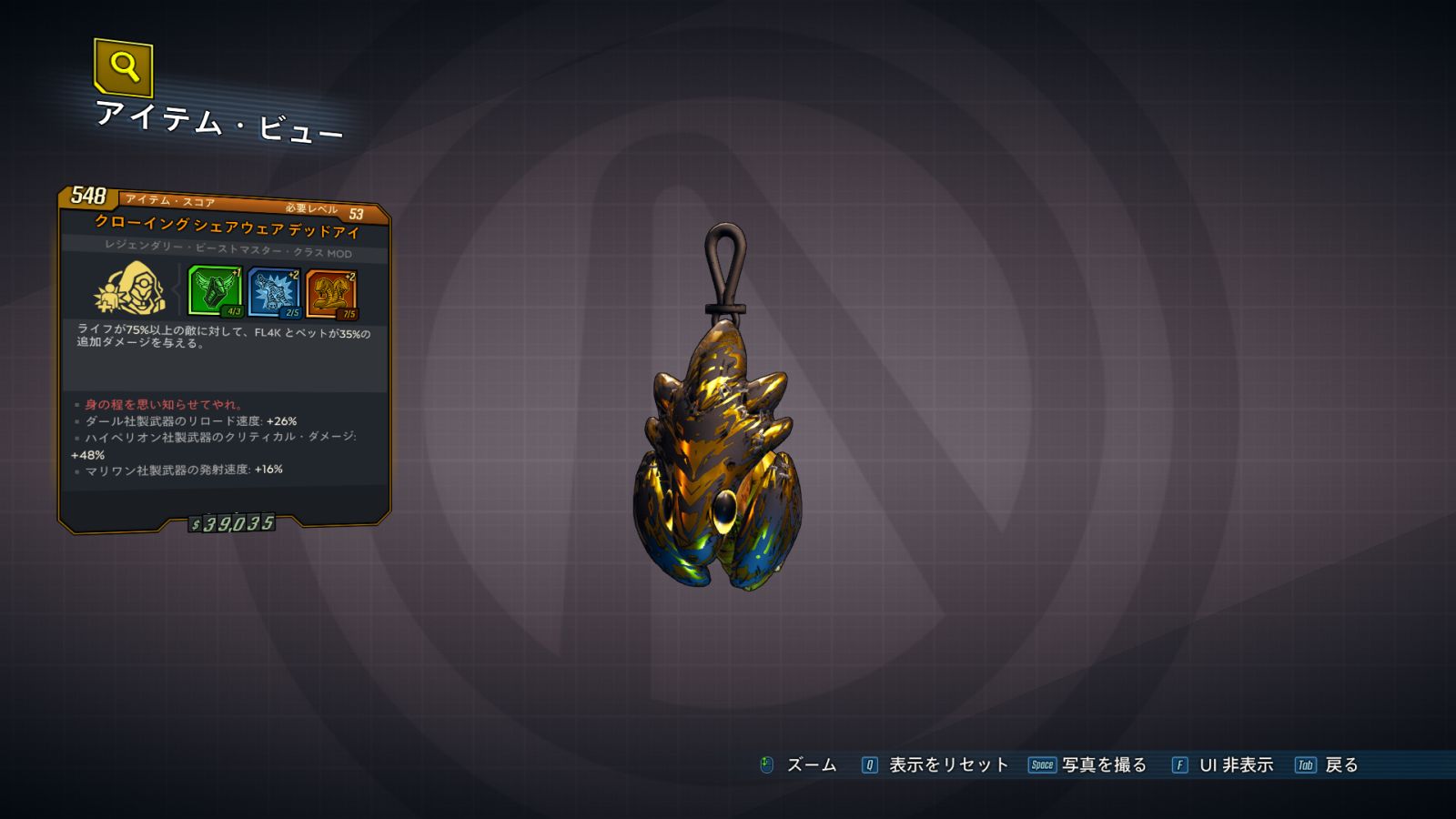 カテゴリ:アイテム クラスMOD レジェンダリー ビーストマスター ワールドドロップ