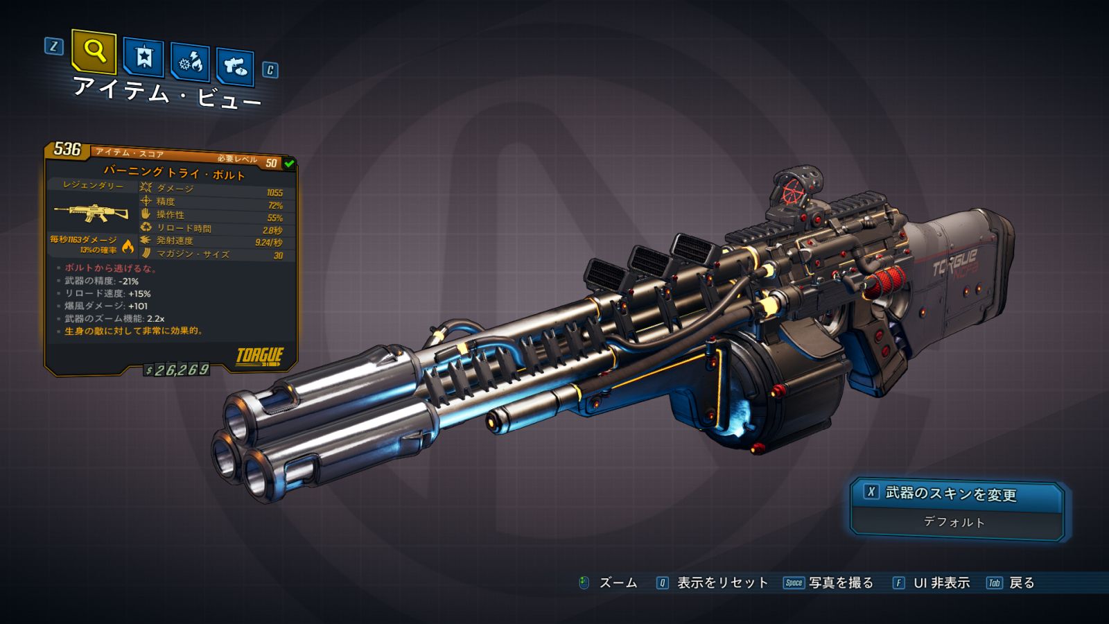 | ・リロード速度: +15% ・爆風ダメージ半径: +85 ・武器のズーム機能: x |