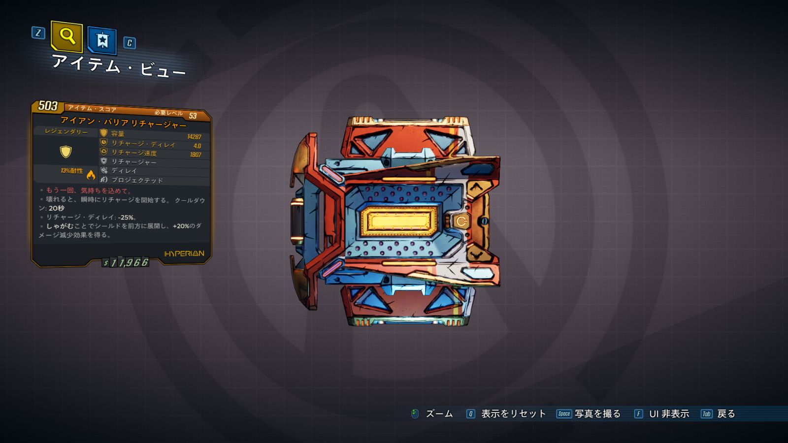 カテゴリ:アイテム シールド レジェンダリー ハイペリオン ワールドドロップ