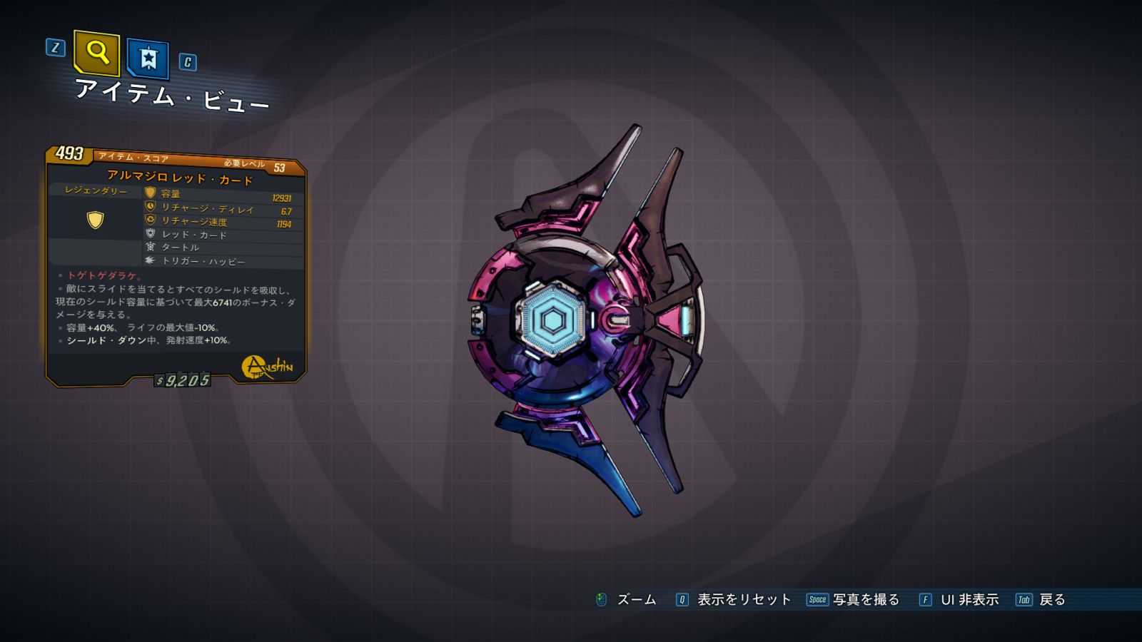 カテゴリ:アイテム シールド レジェンダリー アンシン ワールドドロップ