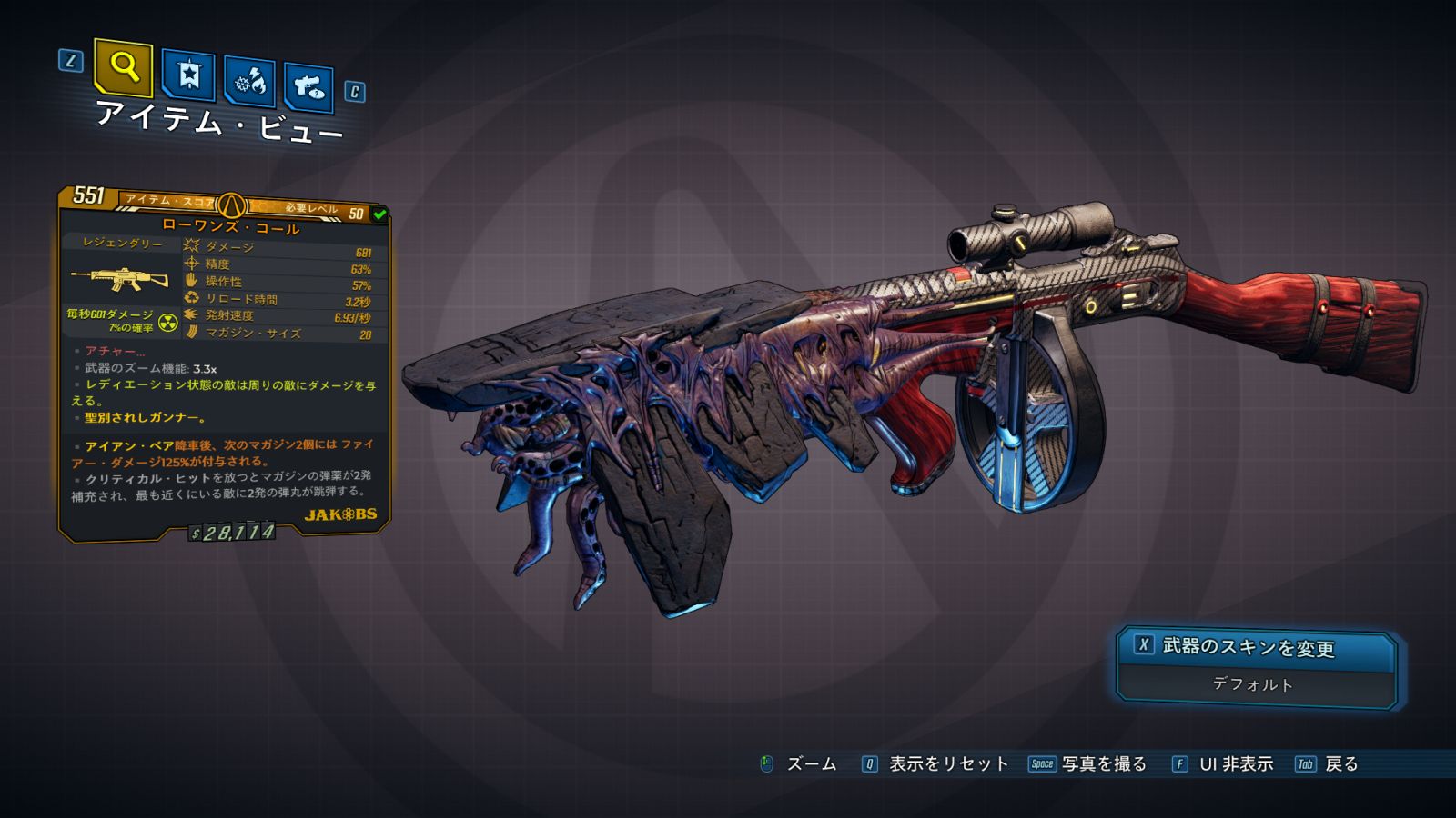 | ・リロード速度: +% ・武器のズーム機能: x |