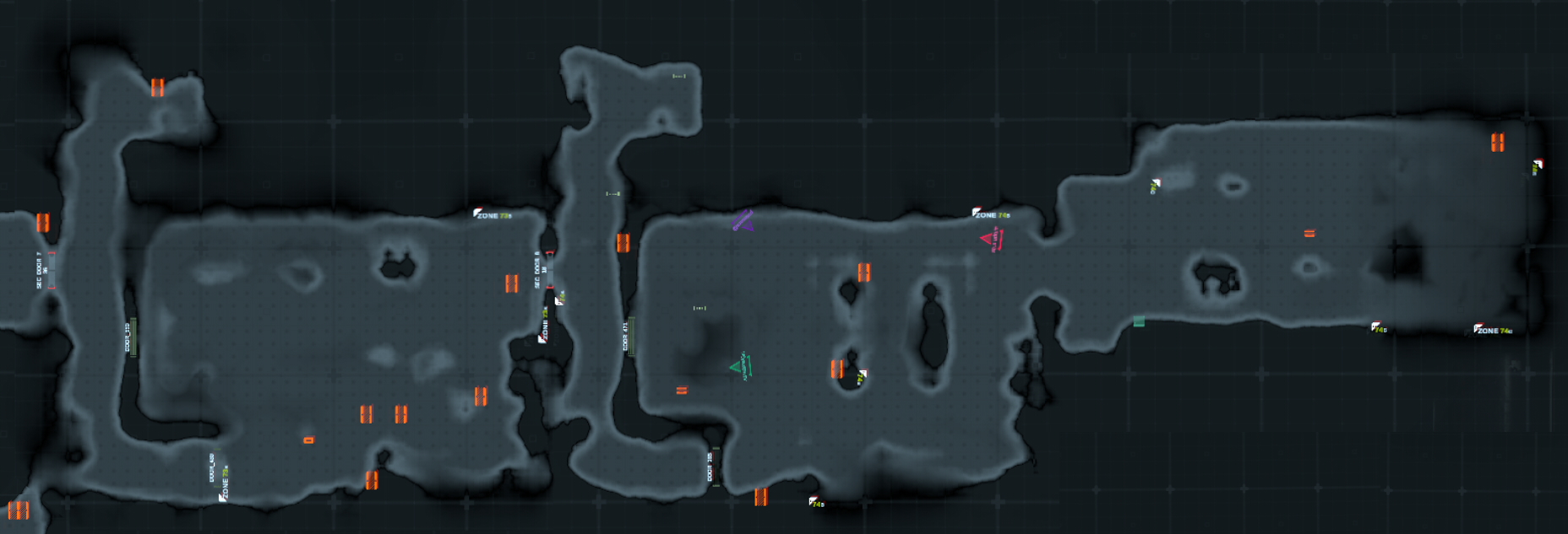 だがこのセキュリティドアを開けるとゾーン71セキュリティドアのアラーム解除時に敵が沸く位置が複数になってしまうのでツール類の設置が難しくなる。