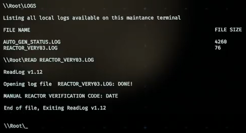 該当ターミナルで"LOGS"コマンドを入力するとコードの含まれたログファイルが発見できる。