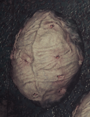 Spitterは特定エリアの壁や天井に張り付いている緑色の繭のようなエネミー。